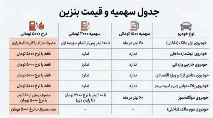 • ۶۰ لیتر اول: با نرخ یارانه‌ای ۱۵۰۰ تومان.